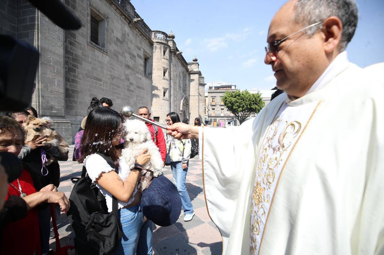 Comunidad. Habitantes de la Ciudad de México acudieron ayer con sus perros a la Catedral Metropolitana para que sean bendecidas, en el marco del día de San Antonio Abad, patrono de los animales para que tengan una “protección divina”.