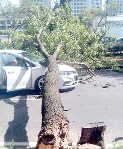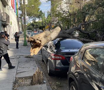 Debido a los fuertes vientos que continúan, se registró la caída de un árbol, ahora en Avenida Paseo de los Laureles.