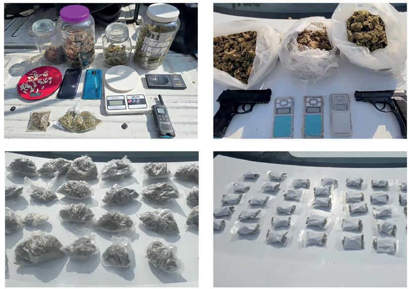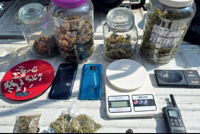 La primera acción se registró en la calle Tenochtitlán, donde se detuvo a dos hombres de 25 y 32 años de edad, a los cuales les aseguraron 50 cápsulas de posible cocaína y cuatro vitroleros con aparente marihuana, tres básculas grameras, un chaleco balístico, dos celulares y un radio.
