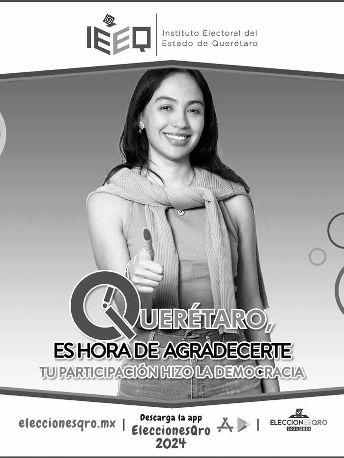 No se devuelven originales. AD QUERÉTARO, periódico diario, 3 de Junio de 2024. Editor responsable: Fernando Sánchez López. Reserva de Derechos al Uso Exclusivo número 04-2022-080513290700-101 y Certificado de Licitud de Título y Contenido número 17516, de los cuales es titular