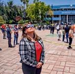 CONGREGA UAQ A OBSERVADORES DEL ECLIPSE SOLAR Un estimado de 800 personas, entre docentes, estudiantes, personal administrativo y público en general, se concentraron en la Explanada de Rectoría de la UAQpara atestiguar el eclipse solar.