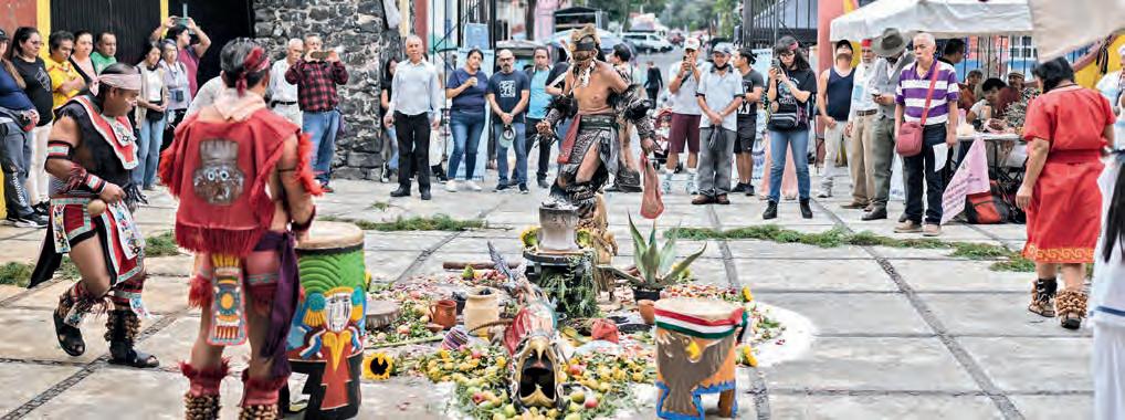de mi nombre”, dijo la mujer de 50 años minutos antes de iniciar una ceremonia ancestral Mexica en el barrio de Tepito. “Para portar una insignia que me represente como la identidad que soy”. Desde 2021, cuando fundó una organización que difunde el legado Mexica en-