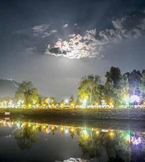 Nubes flotan junto a una superluna sobre el río Jhelum en Srinagar, Cachemira.