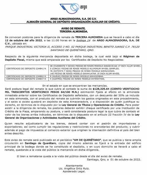 No se devuelven originales. Dirección: Av. Constituyentes 109 int. 11, Colonia Carretas, CP. 76050, Santiago de Querétaro, Qro. Representantes de publicidad en México D.F: Periódico Reforma, Av. México Coyoacán No. 40, Col. Santa Cruz Atoyac, Tel. 56-28-74-41 y 5 -28-78-78 Representante en Monterrey: Periódico El Norte, Washington 629, 4o. Ote, Monterrey N.L, Tel. 83-18-84-15 Representante en Guadalajara: Periódico Mural, Mariano Otero 4047, Col. La Calma, Zapopan Jalisco. Tel. (3) 134-35-00. AM DE QUERÉTARO es una publicación diaria. Sábado 1 de Octubre de 2022. Número de Certificado de Reserva de Derechos al Uso Exclusivo otorgado por el Instituto Nacional de Derecho de Autor: 04 - 2019 - 010810045700-101. Número de Certificado de Licitud de Título y Contenido No. 17050 de fecha 12 de diciembre de 2017. Domicilio de la Publicación: Av. Constituyentes 109 int. 11, Colonia Carretas, CP. 76050, Santiago de Querétaro, Qro. Imprenta: Bucareli No. 8, Col. Centro, Delegación, Cuauhtémoc, C.P. 01300, CDMX. Servicios informativos: Cuartoscuro, AP, Mexsport, Istockphoto, The New York Times Syndicate. Prohibida la reproducción total o parcial del contenido de esta edición. Certificado de Circulación, Cobertura y Perfil del Lector folio 01058-RHY emitido por y registrado en el Padrón Nacional de Medios Impresos de la Segob.