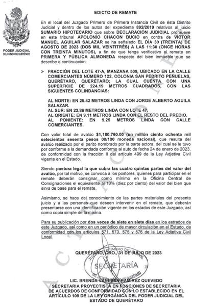 Constituyentes Nº109, Interior 11, Colonia Carretas. C.P. 76050, Santiago de Querétaro, Querétaro. Domicilio de la Publicación: Calzada de los Héroes Número 708 Colonia La Martinica C.P. 37500 León, Guanajuato.