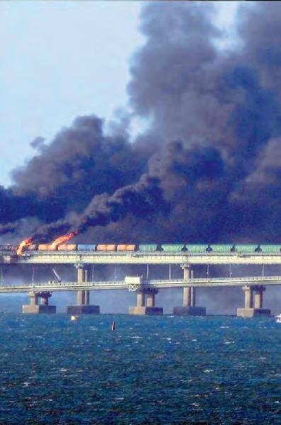 Rusia no atribuyó de in mediato el origen de la ex plosión, que, según las imá genes, hizo volar la mitad de una sección de la calzada del puente, con la otra mitad aún en pie.