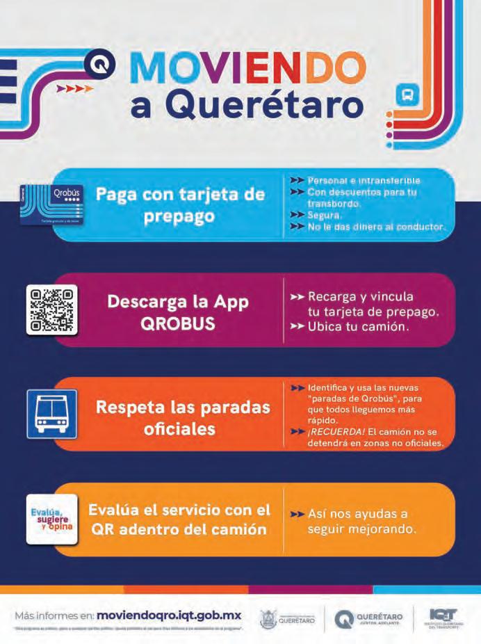 el nuevo modelo de Transporte Público para la Zona Metropolitana de Querétaro. No se trata de un maquillaje o de ajustes superficiales, si no de mejoras sustanciales de forma ordenada y ruta por ruta al sistema que hoy se tiene.