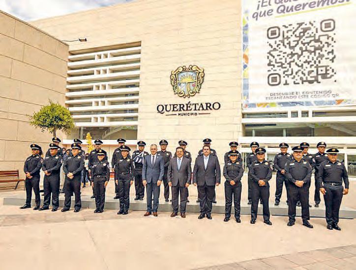 los policías de la Secretaría de Seguridad Pública Mu nicipal, Querétaro seguirá siendo una sociedad de paz, por lo que les invitó a seguir portando con orgullo el uni forme y la insignia de pro moción que se han ganado.