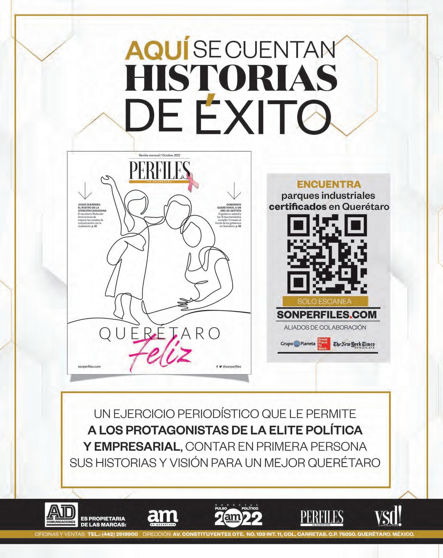 “Lograr esto con éxito re querirá de todo nuestro ta lento, pero, además, de toda nuestra voluntad política y nuestra unidad como mexica nas y mexicanos. Querétaro levanta la mano para aportar lo mejor que tenemos: un es tado próspero, con una eco nomía resiliente, paz social y paz laboral. La mejor ubi cación en términos de logís tica y el inigualable talento de nuestra gente”.