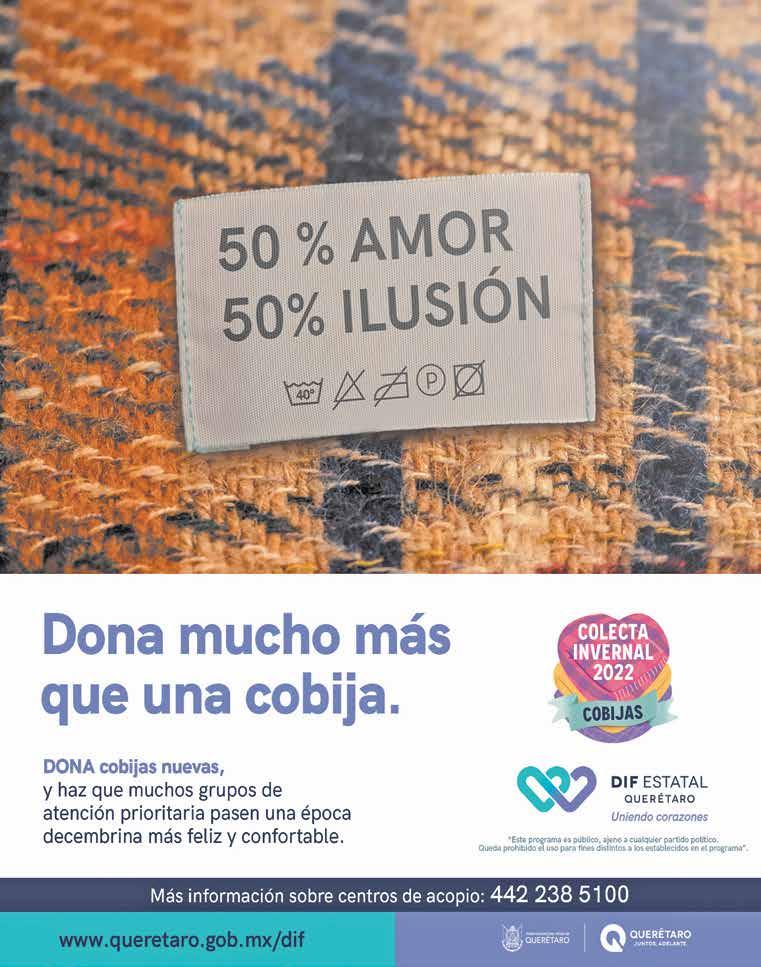 Querétaro 02 #EnLaMira JUEVES 8 DE DICIEMBRE DE 2022 No se devuelven originales. Dirección Av. Constituyentes 109 int. 11, Colonia Carretas, CP. 76050, Santiago de Querétaro, Qro. Representantes de publicidad en México D.F: Periódico Reforma, Av. México Coyoacán No. 40, Col. Santa Cruz Atoyac, Tel. 56-28-74-41 y 5 -28-78-78 Representante en Monterrey: Periódico El Norte, Washington 629, 4o. Ote, Monterrey N.L, Tel. 83-18-84-15 Representante en Guadalajara: Periódico Mural, Mariano Otero 4047, Col. La Calma, Zapopan , Jalisco. Tel. (3) 134-35-00. AM DE QUERÉTARO es una publicación diaria. Jueves 8 de diciembre de 2022. Número de Certificado de Reserva de Derechos al Uso Exclusivo otorgado por el Instituto Nacional de Derecho de Autor: 04 - 2019 - 010810045700-101. Número de Certificado de Licitud de Título y Contenido No. 17050 de fecha 12 de diciembre de 2017. Domicilio de la Publicación: Av. Constituyentes 109 int. 11, Colonia Carretas, CP. 76050, Santiago de Querétaro, Qro. Imprenta: Bucareli No. 8, Col. Centro, Alcaldía Cuauhtémoc, C.P. 06040, CDMX Servicios informativos: Cuartoscuro, AP, Mexsport, Istockphoto. Prohibida la reproducción total o parcial del contenido de esta edición. DIRECTOR GENERAL EDITORIAL Miguel Ángel Flores García mflores@adcomunicaciones.mx CONTENIDOS editores@amqueretaro.com Miguel Tierrafría Magdiel Torres Georgina Fernández Juan Carlos Machorro Mauricio del Ángel Berenice Rodríguez ARTE E IMAGEN Marco A. Rodríguez Juan Palma Daniela Ramírez Diseño Editorial Isai López Fotografía y Video AMQUERETARO.COM internet@amqueretaro.com Lorena Rudo Editora Web Estefany González Community Manager Hans Alfonso Frei Nieto, José de la Garza Pedraza, Juan Germán Torres Landa García, Verónica Valverde, Alejandra Vega Reyes, Luis Miguel Rubín Colea, María Genoveva Anaya Saavedra, Mariana Vidales Guerrero, Óscar Peralta Casares, Pedro Ruiz Velasco, Mauricio Sánchez Botello CONSEJO EDITORIAL DIRECTOR COMERCIAL Antonio Collado Prieto acollado@adcomunicaciones.mx Editado por la empresa AD Comunicaciones S de RL de CV Directorio publicidad@adcomunicaciones.mx Móvil: (442) 479 14 89 Oficina: (442) 291 99 00 ALIANZAS DE COLABORACIÓN SUSCRIPCIONES Andrea Jiménez suscripciones@adcomunicaciones.mx CIRCULACIÓN Emmanuel Hernández pagos@adcomunicaciones.mx ADMINISTRACIÓN Mariana Picazo administracion@adcomunicaciones.mx JEFATURA DE INFORMACIÓN Marittza Navarro JEFATURA DE REPORTEROS Salvador Castillo EDITORA GENERAL VSD! Y WEEKEND Arcelia Guadarrama Certificado de Circulación, Cobertura y Perfil del Lector folio 01058-RHY emitido por y registrado en el Padrón Nacional de Medios Impresos de la Segob.