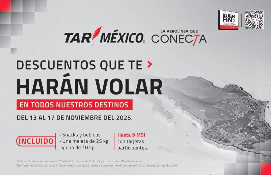 Destaco el hecho de que en este año 2025 se rompió el récord en el número de pasajeros transportados desde sus instalaciones, incrementándose casi 20 por ciento en el periodo de enero a septiembre de 2025 en comparación al mismo periodo del año pasado, lo cual representa un millón 762 mil pasajeros.