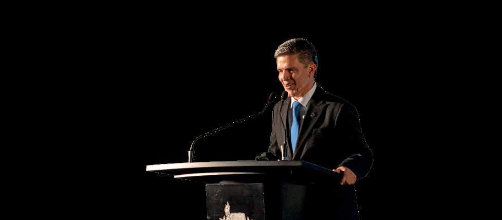 presarios, autoridades y exalumnos en una emotiva ceremonia presidida por figuras como Ricardo Saldívar Escajadillo, presidente del Consejo del Tecnológico de Monterrey; David Garza Salazar, rector y presidente ejecutivo; Juan Pablo Murra Lascurain, rector de profesional y posgrado; Claudia Félix Sandoval, vicepresidenta de Centro-Occidente; Rafael Rangel, primer director del Campus Querétaro de 1985 a 2011; Pascual Alcocer Alcocer, director general del Campus Querétaro.