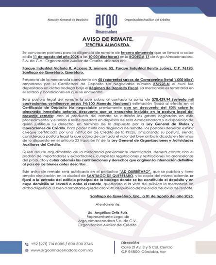 C.V. Avenida Constituyentes Nº 109, Interior 11, Colonia Carretas. C.P. 76050, Santiago de Querétaro, Querétaro.