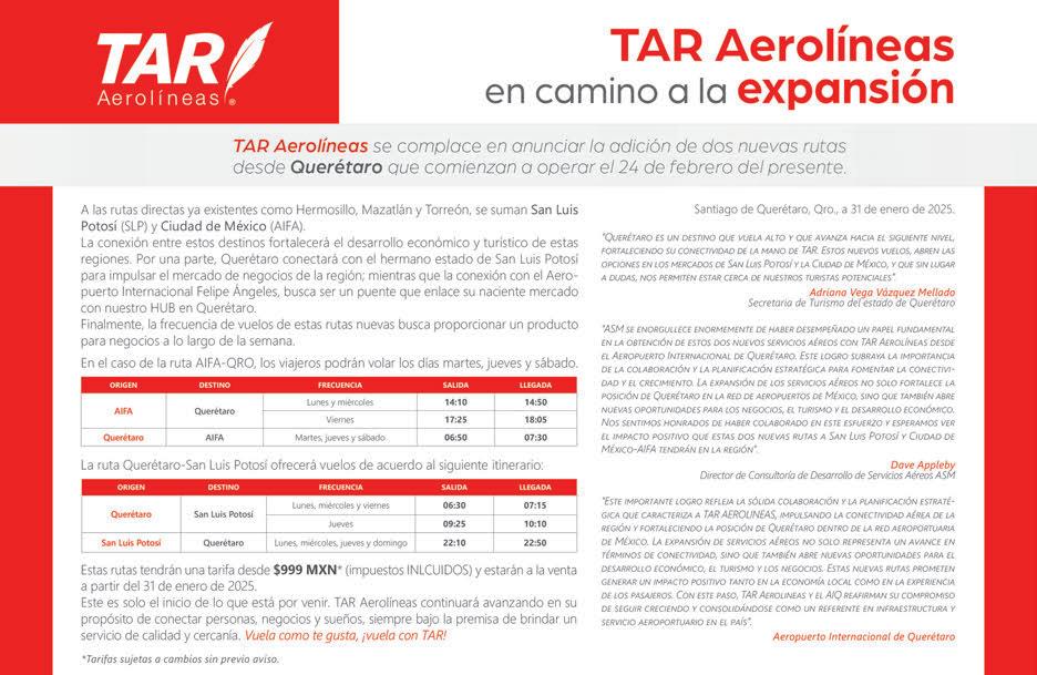 “Nos falta mucho; por ejemplo, anunciar el Museo del Nacimiento, de la Santa Veracruz, como sitios culturales, el centro histórico... y reitero dar mucha publicidad a los restaurantes, a las cafeterías céntricas y que ya están muy consolidadas en San Juan del Río”.