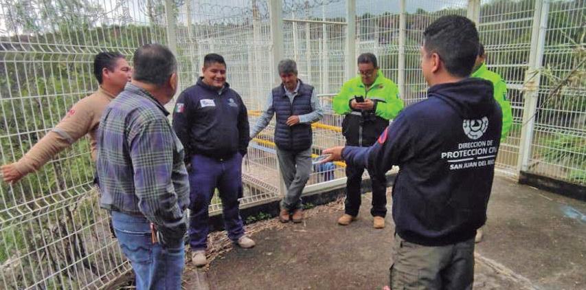 El coordinador de Protección Civil municipal en San Juan del Río, Carlos Eduardo Badillo Pichardo, hizo un recorrido con personal de la Comisión Nacional del Agua (Conagua) por presas y bordos del municipio, con la finalidad de monitorear los niveles de estos cuerpos de agua.