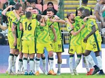 El seleccionado de Congo festejó con todo, se quitó la playera, y se ganó la doble amarilla. Congo terminó con un hombre menos en el campo.