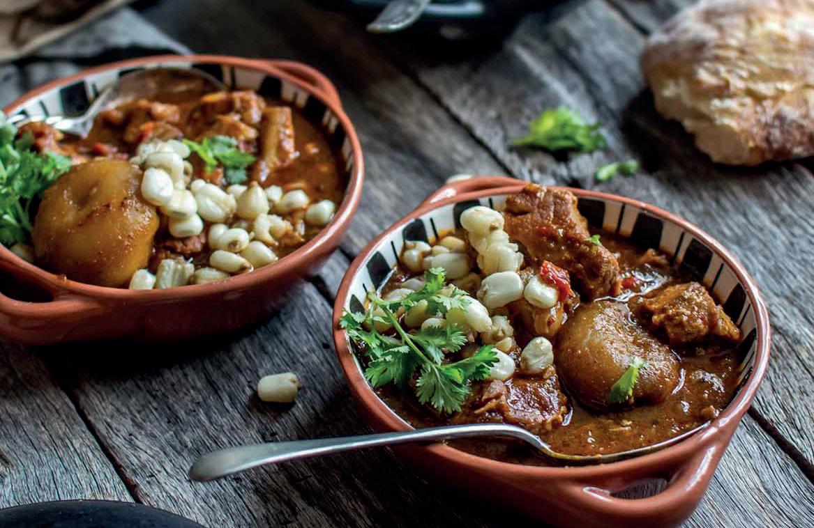 Costa: arroz con pato, sopa seca, chancho al cilindro y panetón de maíz morado.