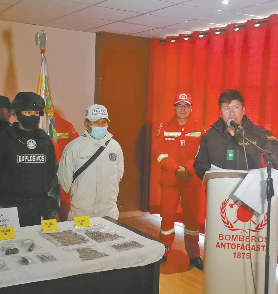 La presentaBolivianaPolicíalosexplosivoscapturados.