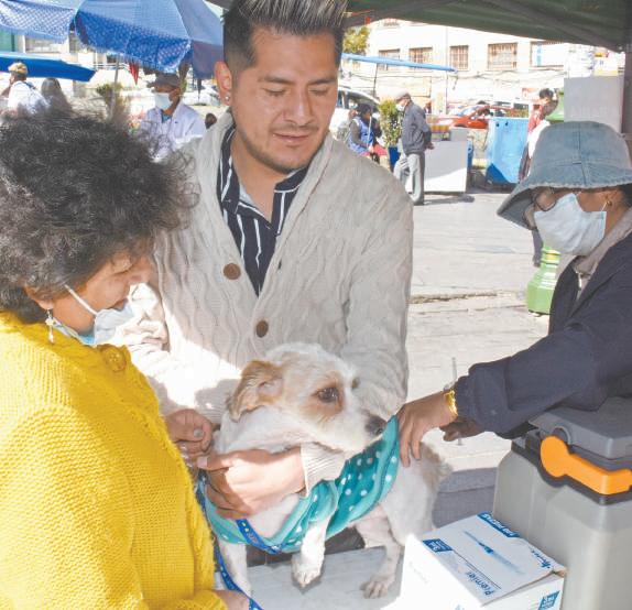 SE INOCULÓ A ANIMALES DOMÉSTICOS voluntarios salieron a las calles para instalar y atender puntos de vacunación antirrábica entre ayer y “Estamoshoy. alcanzando el cien por ciento de las dosis que nos han entregado y queremos agra decer a la población que se ha dado tiempo para venir a vacu nar a sus animales”, comentó Ro gelio Velazco, enfermero, quien estuvo a cargo del punto de vacu nación establecido en la Plaza del Estudiante, en La Paz. Varios dueños acudieron ma sivamente a inocular a sus mas Los signos de la enfermedad.