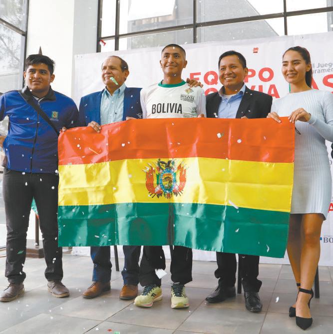 “A nombre de nuestro presidente Luis Arce entregamos nuestra bandera nacional y los pasajes aéreos internacionales que van a garantizar a todo el equipo boliviano es tar presente en los Juegos Suramericanos en Asunción. Ante todo quiero felicitarlos por ese sacrificio, esa entrega, por no rendirse”, afirmó Veizaga.