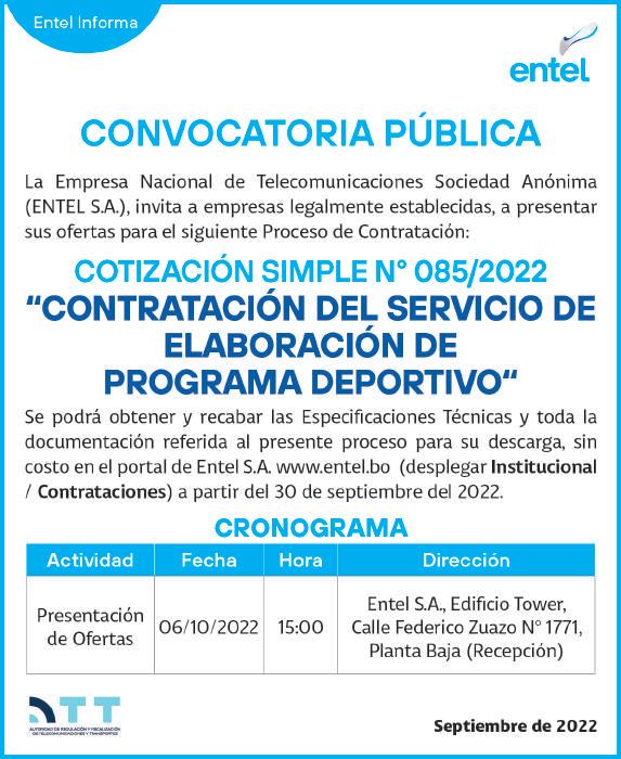 El ejecutivo explicó que, pasados los cinco días del 30 de septiembre, el Seprec re mite información a la Au toridad de Fiscalización de Empresas del Ministerio de Desarrollo Productivo y Eco nomía Plural (MDPyEP).
