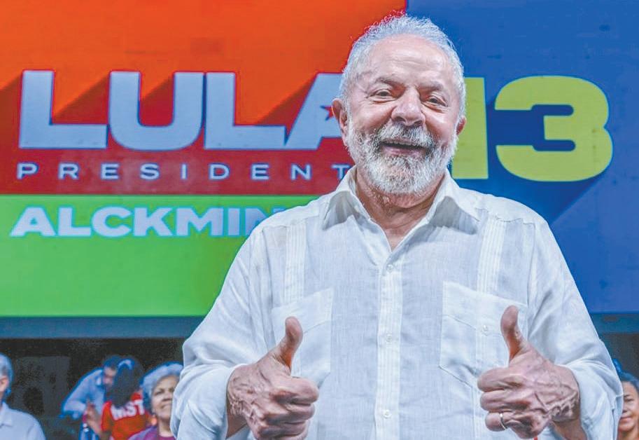 Según un sondeo divul gado el miércoles, Lula va al frente de la carrera con un 48 por ciento de intenciones de voto, seguido del actual pre sidente Jair Bolsonaro, con un 38 por ciento. Luego apa recen los candidatos Ciro Go mes, con el 6 por ciento de los votos válidos, y Simone Te