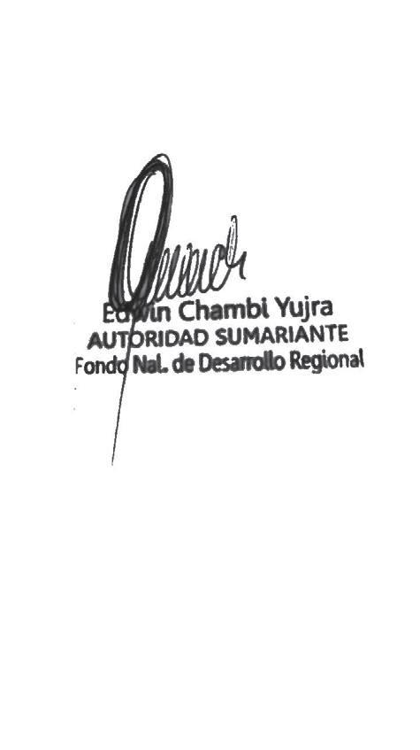 EL SUSCRITO SUMARIANTE DEL FONDO NACIONAL DE DESARROLLO REGIONAL EN USO DE SUS ATRIBUCIONES