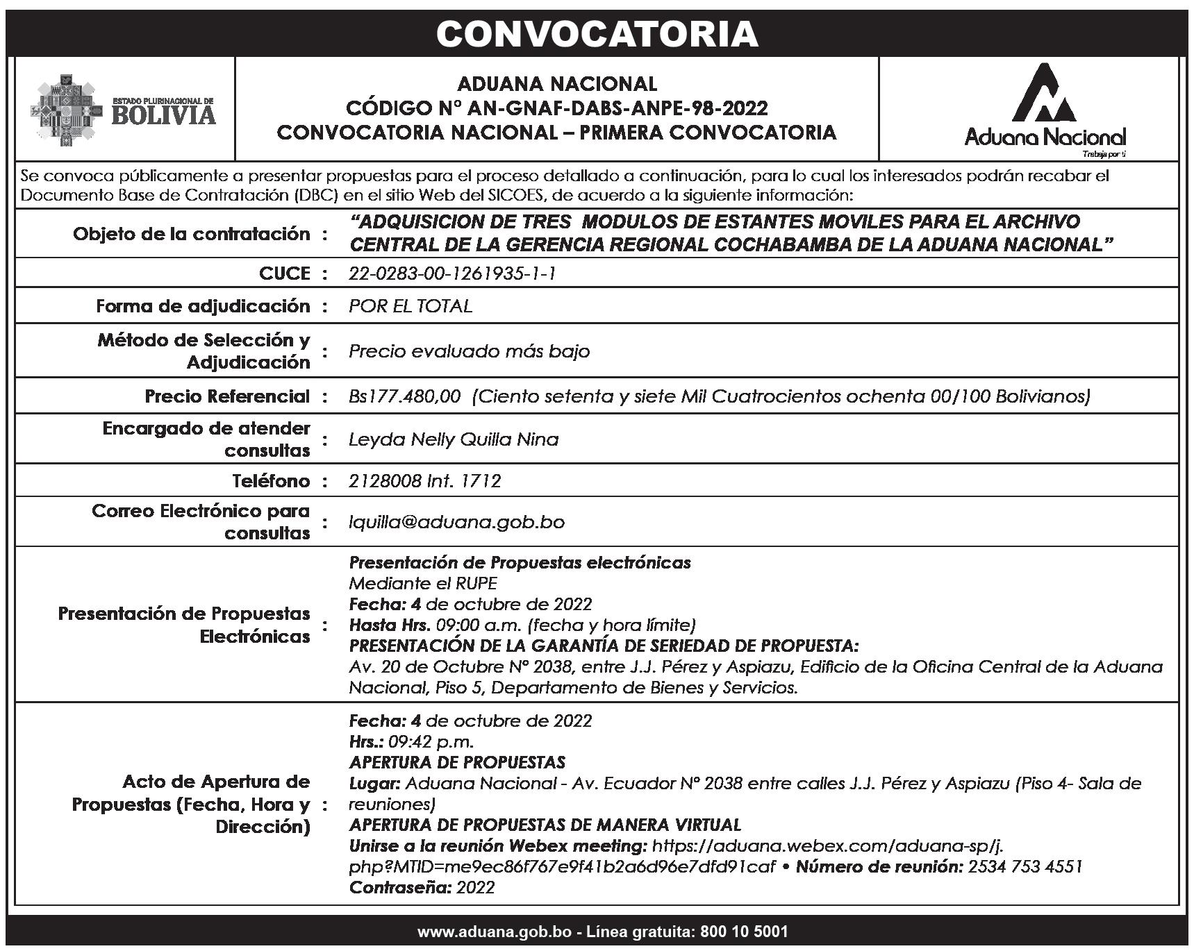 Firma y Sella: Antonio Claudio Martínez Villa, Gerente Regional La Paz a.i. - Aduana Nacional--------------------------------------------------------------------