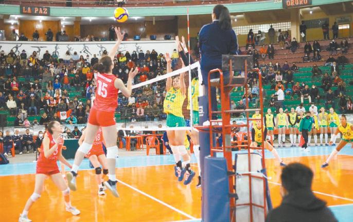 Una muestra de la contundencia ofensiva de la selección boliviana. Sudamericano de voleibol femenino U19 La alegría de las jugadoras argentinas tras la victoria ante Perú. Una incidencia del partido que jugaron las selecciones de Brasil y Chile.2