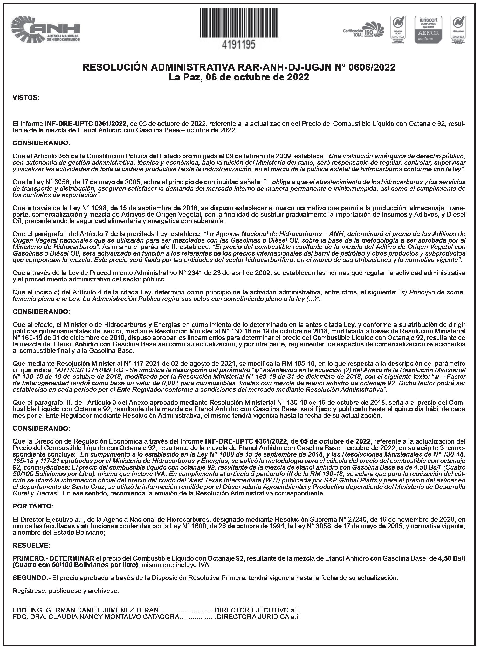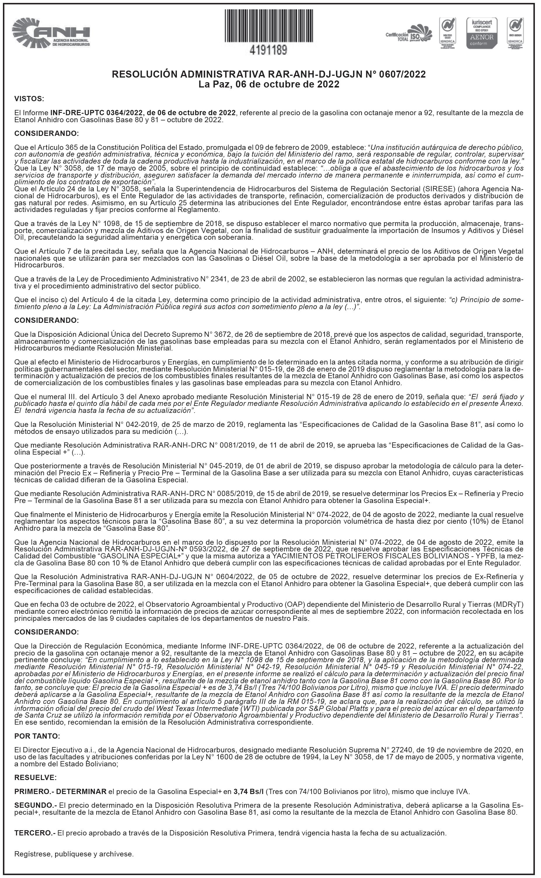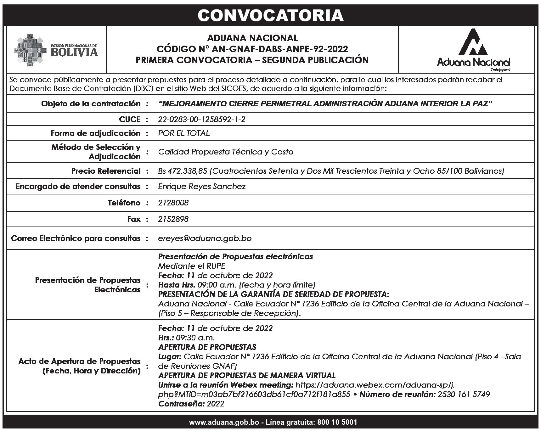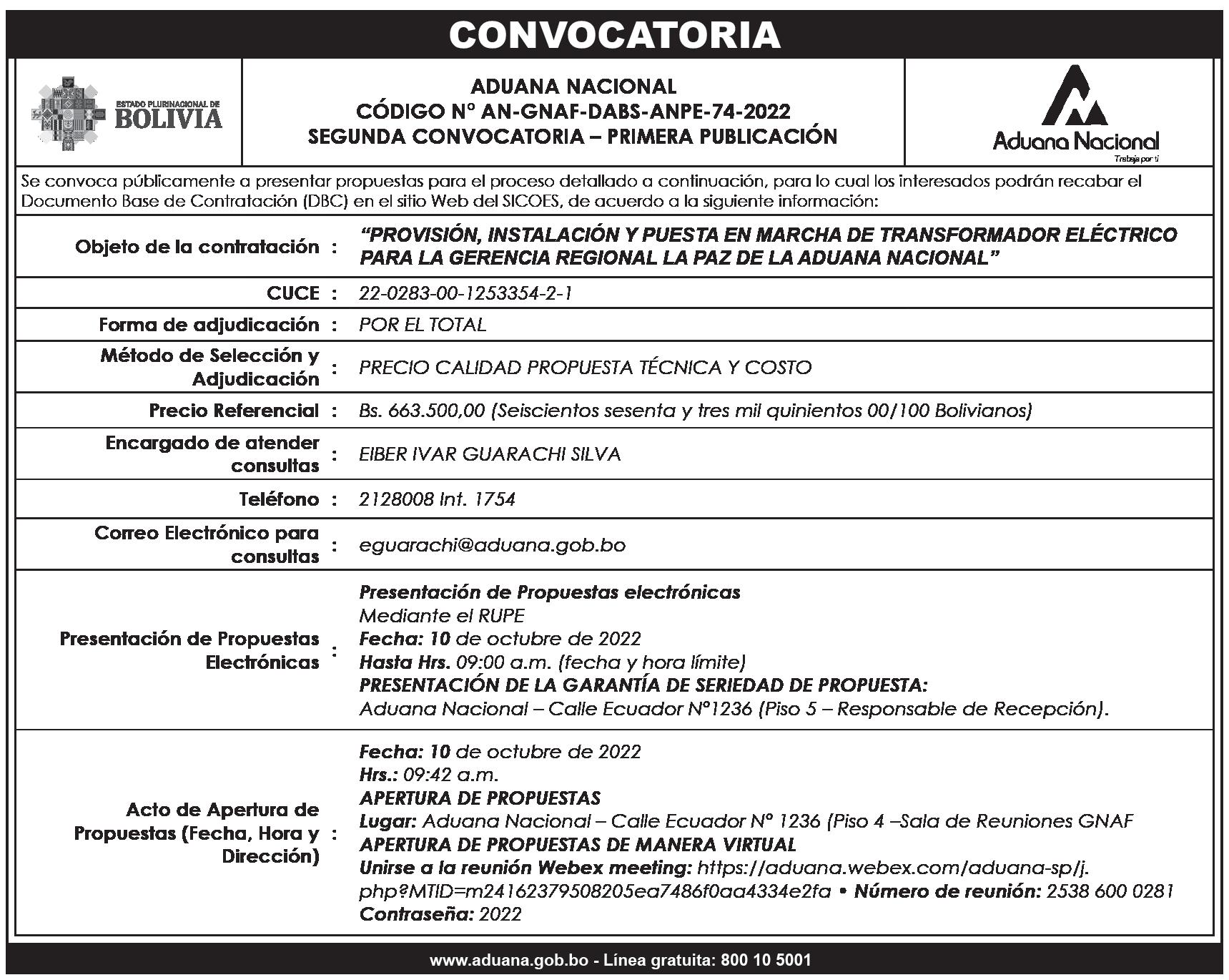 Se convoca con carácter de urgencia al señor Walter Iriarte Mercado, representante legal de la empresa de Transportes “Esmeralda” con número de NIT 2601415019, a presentarse en el lapso de 10 días, para conciliar cuentas pendientes de pago, en la unidad regional de análisis de cuentas de Yacimientos Petrolíferos Fiscales Bolivianos (YPFB), ubicada en el Edificio Corporativo en la avenida 16 de Julio esquina Reyes Ortiz, (teléfono 2176300 interno 2012).
