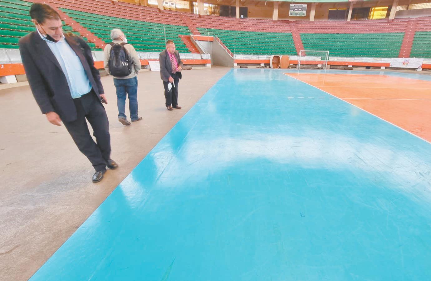 Lacancha principal del coliseo cerrado Julio Borelli Viteritto, que la semana pasada albergó el Sudamericano U19 femeni no de voleibol, se encuentra en mal es tado por el uso indebido del fin de se mana, autorizado por parte del Servicio Departamental de Deportes (Sedede) de La Paz.