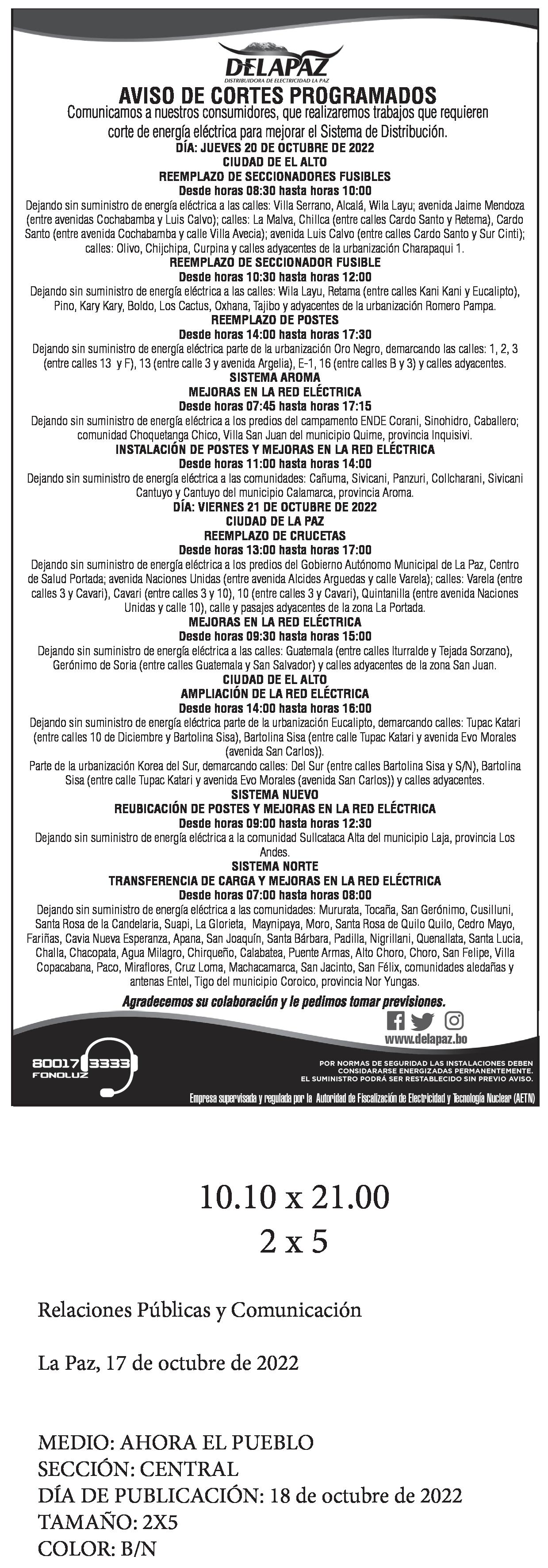 Refirió que en 2020, duran te el Gobierno de facto, la em presa fue mal administrada, al extremo de que reportó pérdi das por Bs 14 millones, situa ción que fue revertida en 2021.