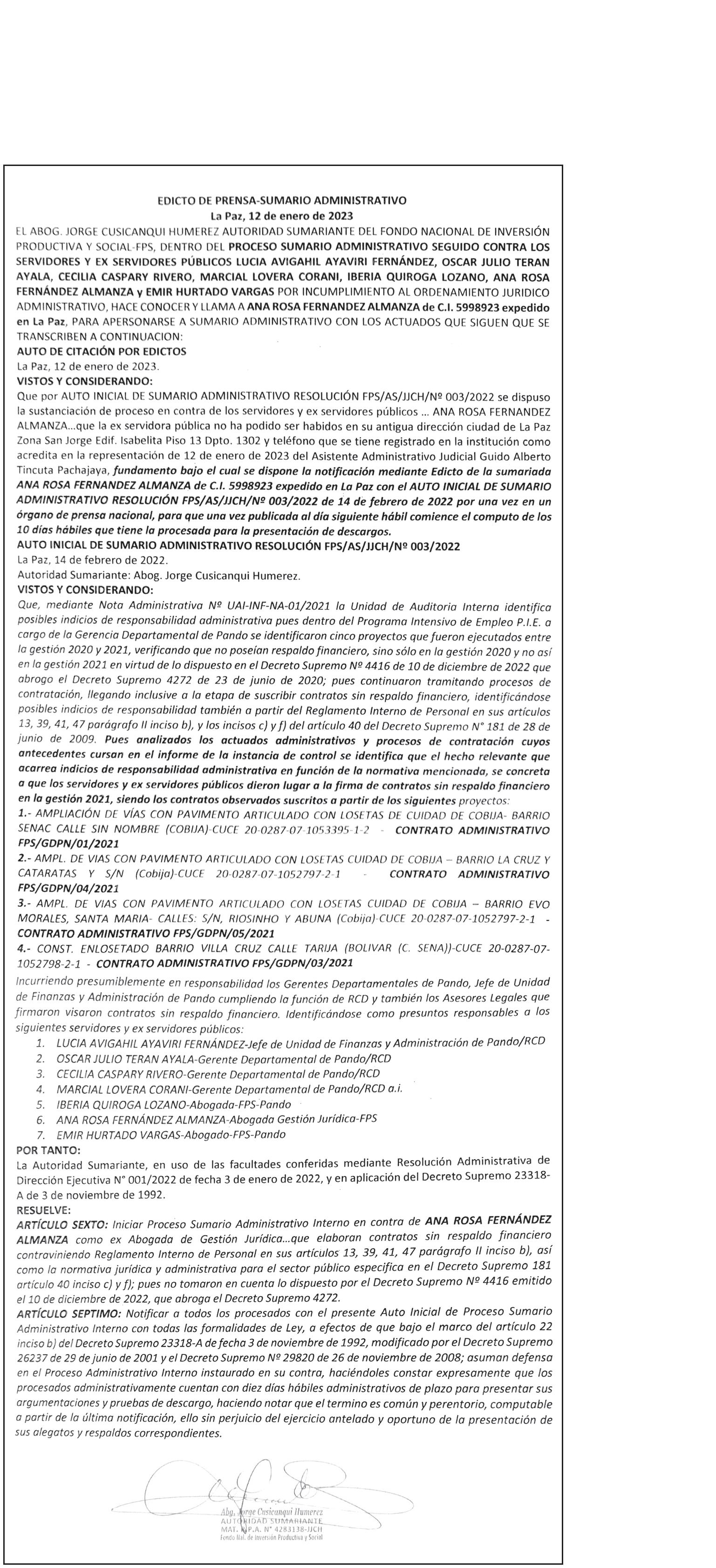 Esta situación se presenta porque el titular Fernando Camacho está con detención preventiva en el penal de Chonchocoro acusado por terrorismo.