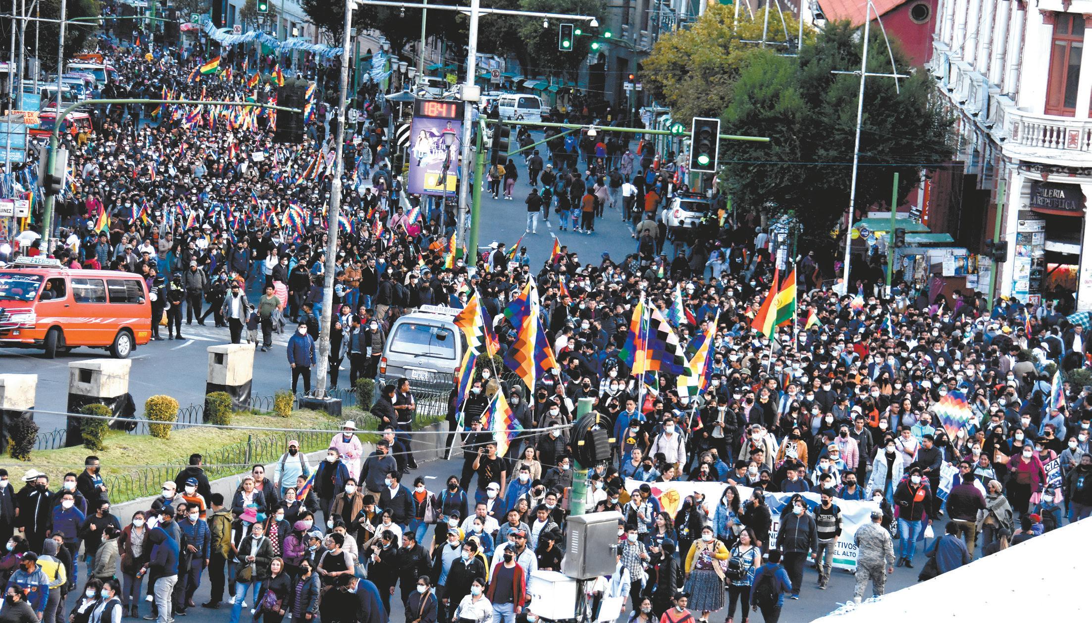 La marcha en La Paz fue masiva y tomó durante horas el centro de la ciudad.