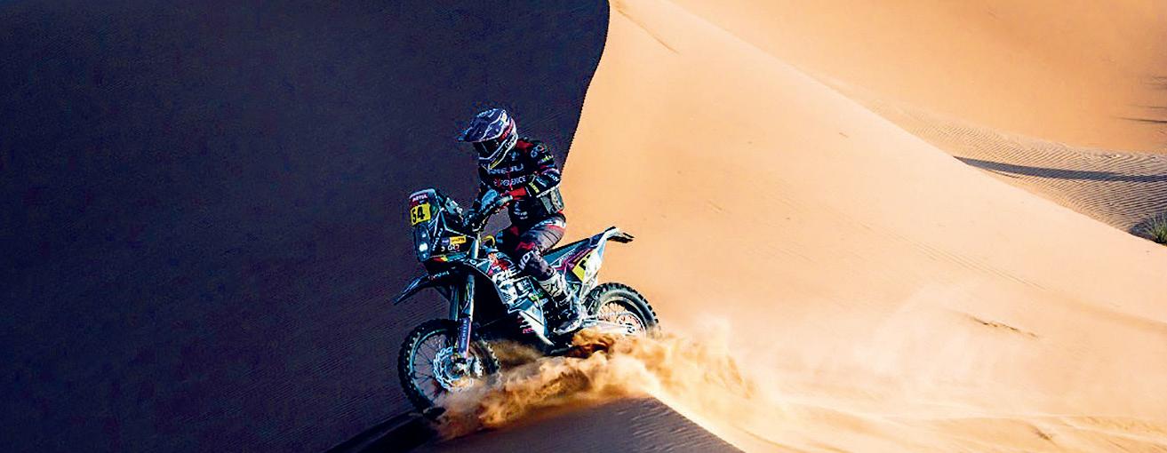 mecánica de las motos. Fue una etapa rápida pero complicada, con interminables dunas de arena muy suave. A la llegada al vivac, la organización dispuso de 30 minutos para que los pilotos revisen y comprueben el buen estado de mecánica de sus motos.