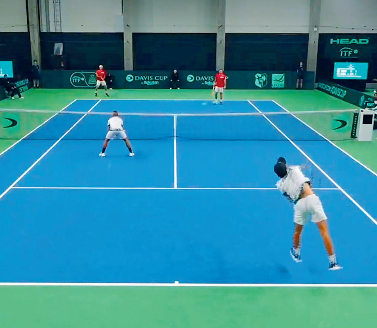 Una escena del partido de dobles entre Bolivia y Georgia.