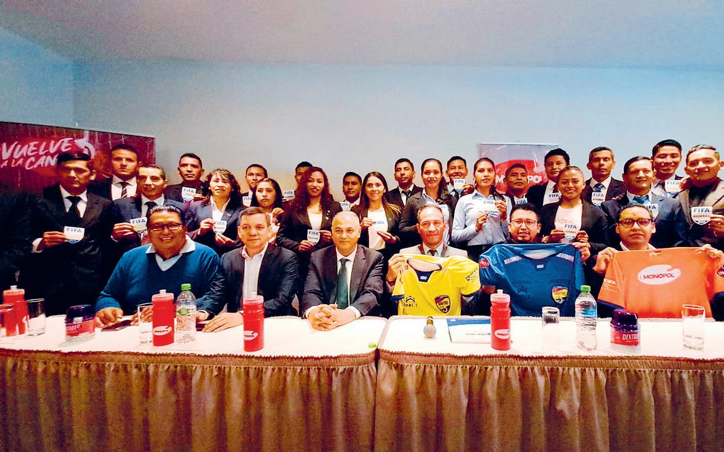 Grupo de árbitros bolivianos que recibieron la insignia FIFA.