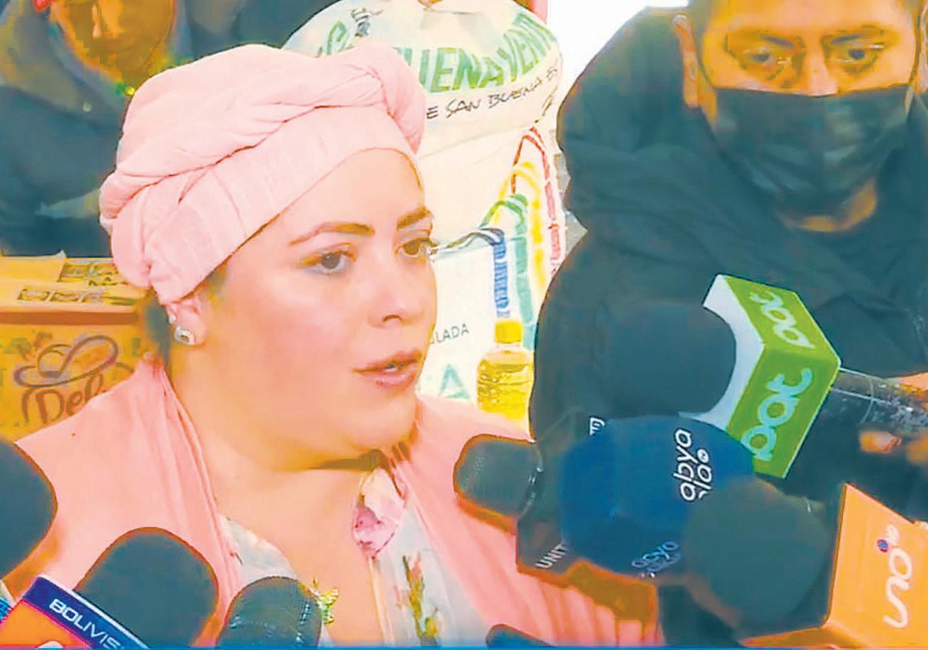 La ministra de la Presidencia, María Nela Prada, durante la entrega de ayuda a comunidades paceñas.