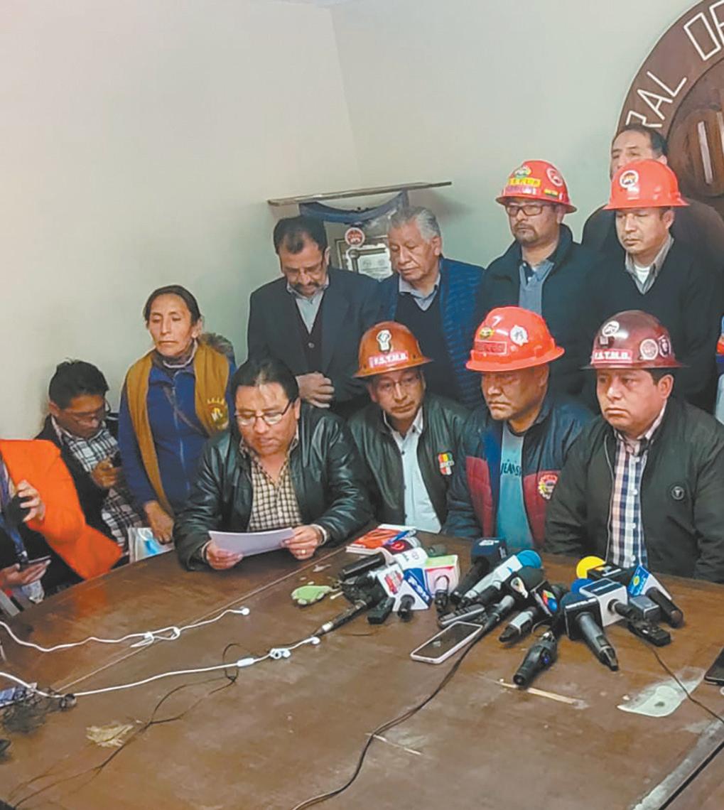 Ante esa situación, el diri gente señaló que las organiza ciones populares sellaron una “unidad granítica” en defensa de la estabilidad social y eco nómica de Bolivia; así tam bién se solidarizan con la lu cha de la población cruceña.