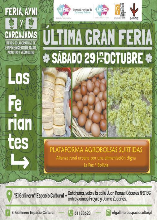 Hoy, en el Espacio Cul tural El Gallinero se ofrecerá productos agrosostenibles. Entre los participantes están agrobolsas surtidas con todos sus productos, que irá acompañado de un espacio de apren dizaje que incluye ta lleres artísticos temá ticos y presentaciones artísticas.