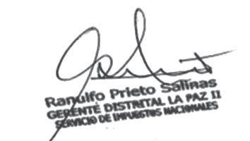 La Gerencia Distrital La Paz II del Servicio de Impuestos Nacionales, en estricta aplicación del Artículo 86º del Código Tributario Boliviano Ley N° 2492, por el presente EDICTO COMUNICA al (a los) contribuyente(s), dependientes(s) y/o Herederos Universales que se detalla(n) a continuación, para que por sí o mediante apoderado legal se apersone(n) ante el Departamento de Fiscalización de esta Gerencia a objeto de conocer el (los) resultado(s) de el(los) proceso(s) de verificación efectuado(s), a través del (de los) cual(es) se detectó que no determinaron correctamente el (los) impuesto(s) conforme a Ley ante el Servicio de Impuestos Nacionales. Por lo expuesto precedentemente, en uso de las facultades otorgadas por los Artículos 92º, 93º, 95º, 96º, 100º, 148º, 162º y 169º del Código Tributario Boliviano Ley N° 2492 modificada por la Ley N° 812 y disposiciones reglamentarias conexas, ha procedido a determinar su(s) obligación(es) tributaria(s) sobre base cierta, relativa(s) al (a los) impuesto(s) y periodo(s) fiscal(es) indicado(s). En virtud al (a los) proceso(s) de la(s) verificación(es) impositiva(s) realizada(s), se ha establecido como liquidación(es) previa(s) del (de los) tributo(s) adeudado(s) el (los) monto(s) que se detalla(n) en “Total Deuda Tributaria”, importe(s) que incluye(n) el Tributo Omitido, Intereses, Sanción Preliminar (en caso de corresponder) y Multa por Incumplimiento de Deberes Formales, según