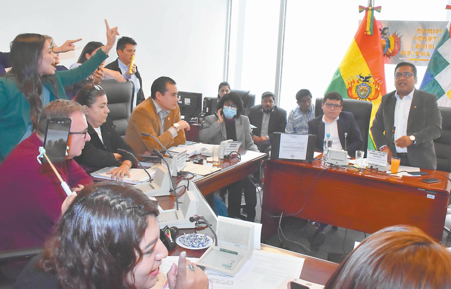 Un grupo de legisladoras de Creemos y Comunidad Ciudadana (CC) irrumpió ayer de forma agresiva en la sesión de la Comisión de Constitución de la Cámara de Diputados que analiza ba los proyectos de Ley del Censo y tomó como rehén al ministro de Planificación, Sergio Cusicanqui.
