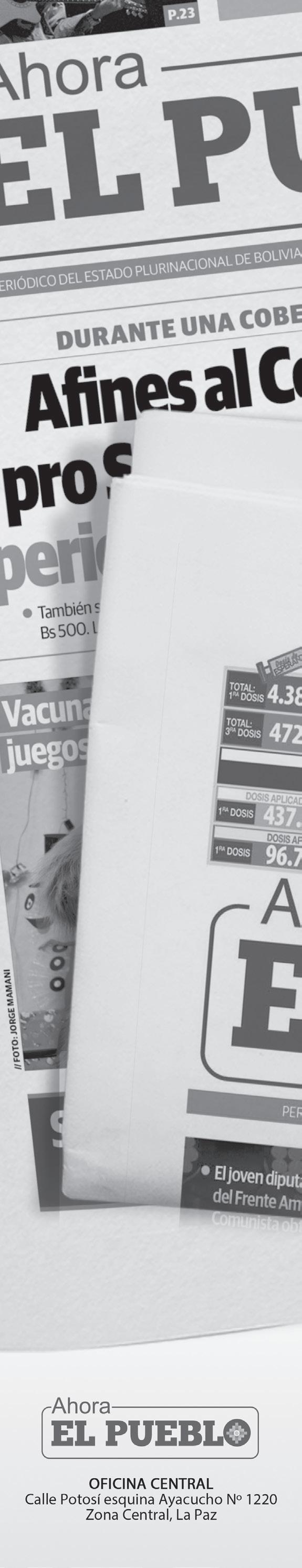 Fotografía. Gonzalo Jallasi Huanca, Jorge Mamani Karita, Gustavo Ticona Diagramación. Iván Laime Sarsuri, Gabriel Omar Mamani Condo Infografía. Yuri Rojas Monteagudo