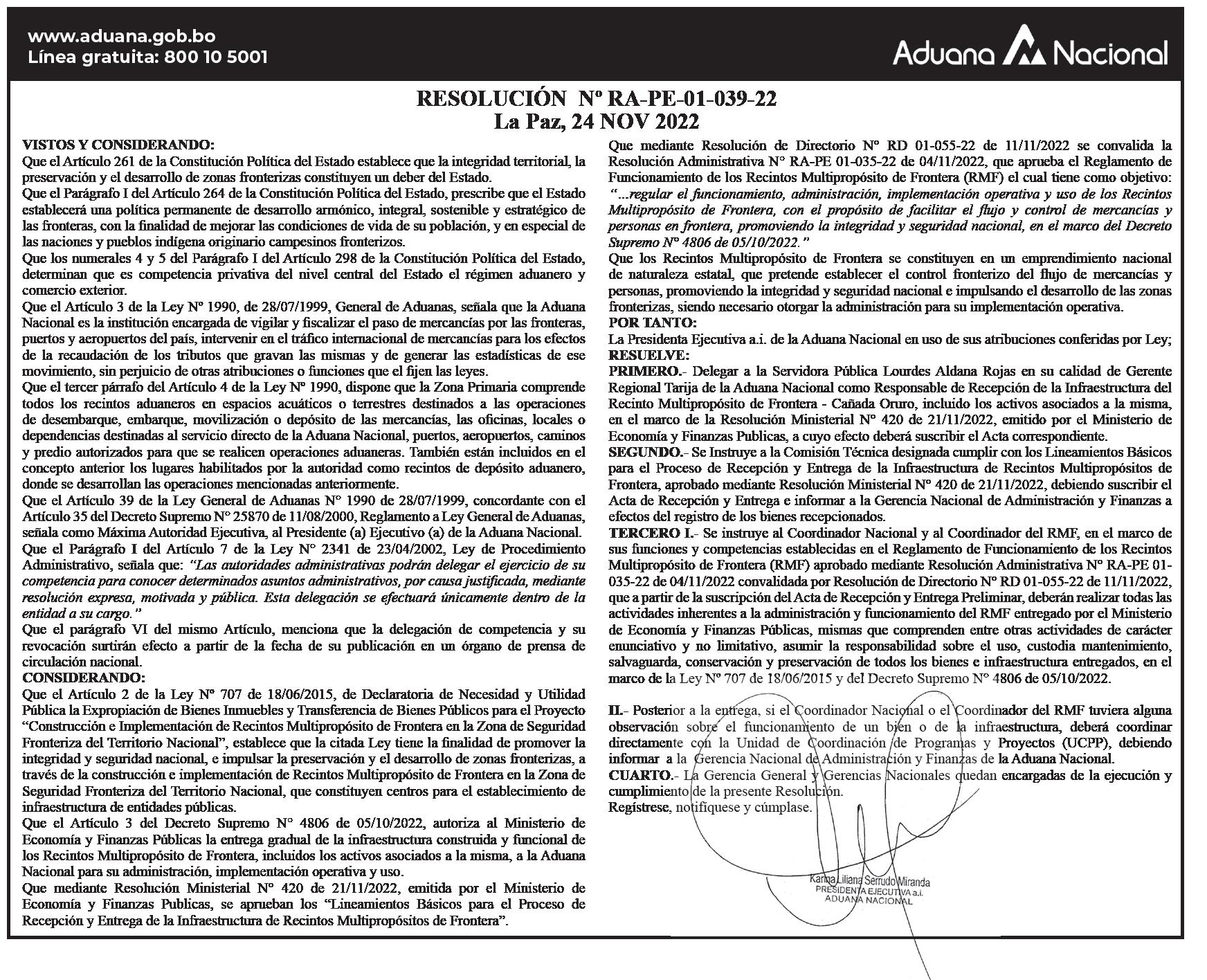 El Director Ejecutivo de la Autoridad de Fiscalización de Electricidad y Tecnología Nuclear (AETN), conforme a la Resolución Suprema N° 27288 de 30 de noviembre de 2020, en uso de las funciones y atribuciones conferidas por la Ley N° 1604 de Electricidad de 21 de diciembre de 1994, el Decreto Supremo N° 0071 de 09 de abril de 2009, modificado mediante Decreto Supremo N° 3892 de 1° de mayo de 2019 y demás disposiciones legales en vigencia; RESUELVE: