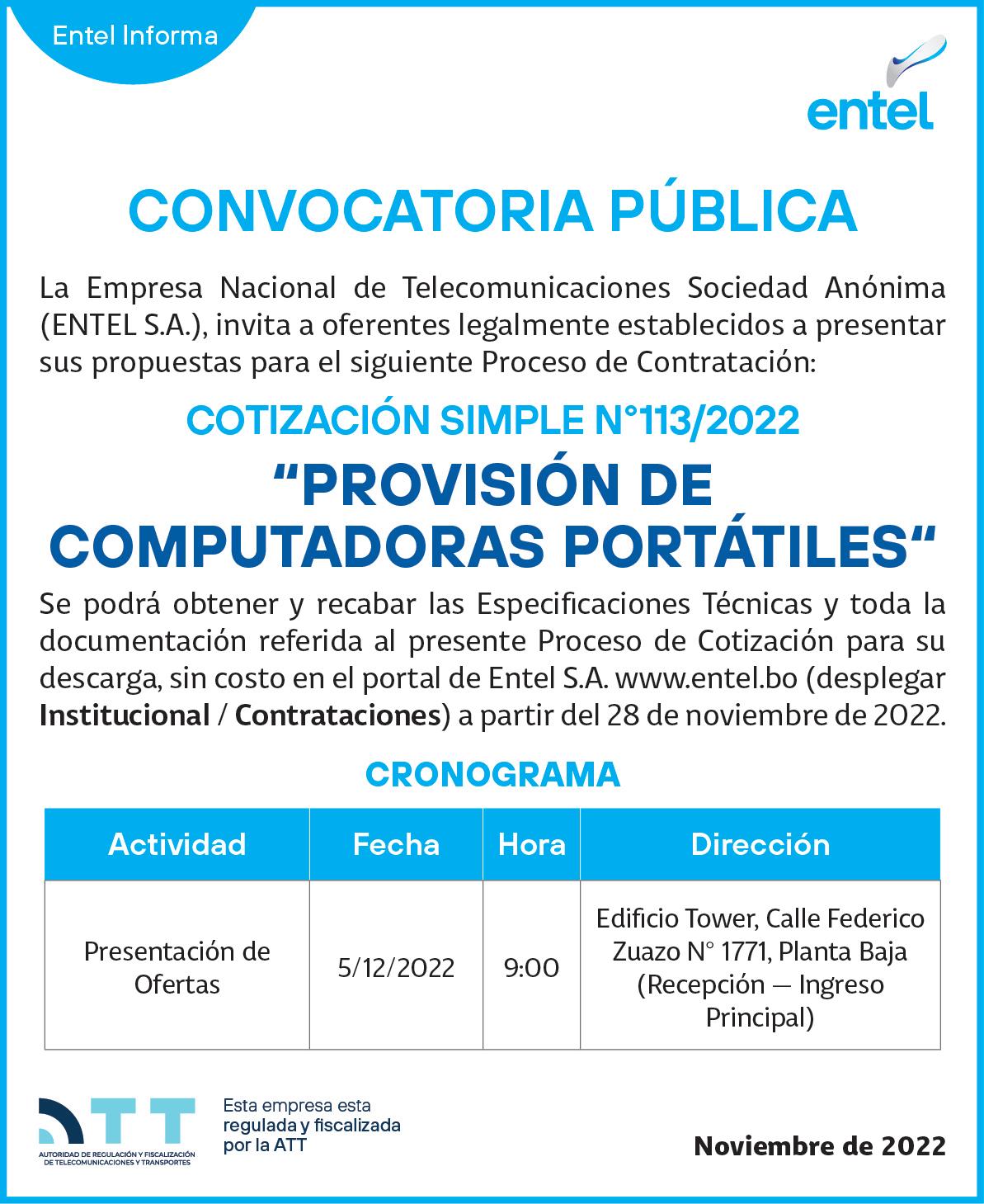 Las especificaciones Técnicas y formularios pueden ser descargados a partir del lunes, 28 de noviembre de 2022 en la siguiente dirección electrónica: https://www.sedem.gob.bo/kokabol-equipamiento002/