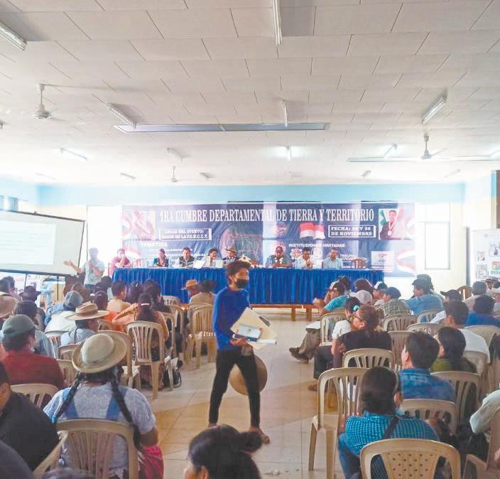 La Cumbre Departamental por la Tierra y el Territorio concluyó ayer, y congregó a autoridades na cionales del Viceministerio de Au tonomías, Instituto Nacional de Reforma Agraria (INRA), Fiscalía Departamental de Tarija y el Tri bunal Agroambiental.