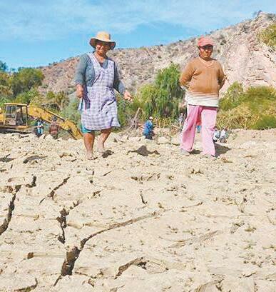 La señal más evidente del fenómeno natural en el área urbana es la laguna Alalay, cuyo espejo de agua luce totalmente reducido.Familias campesinas de Cochabamba afectadas por la sequía.
