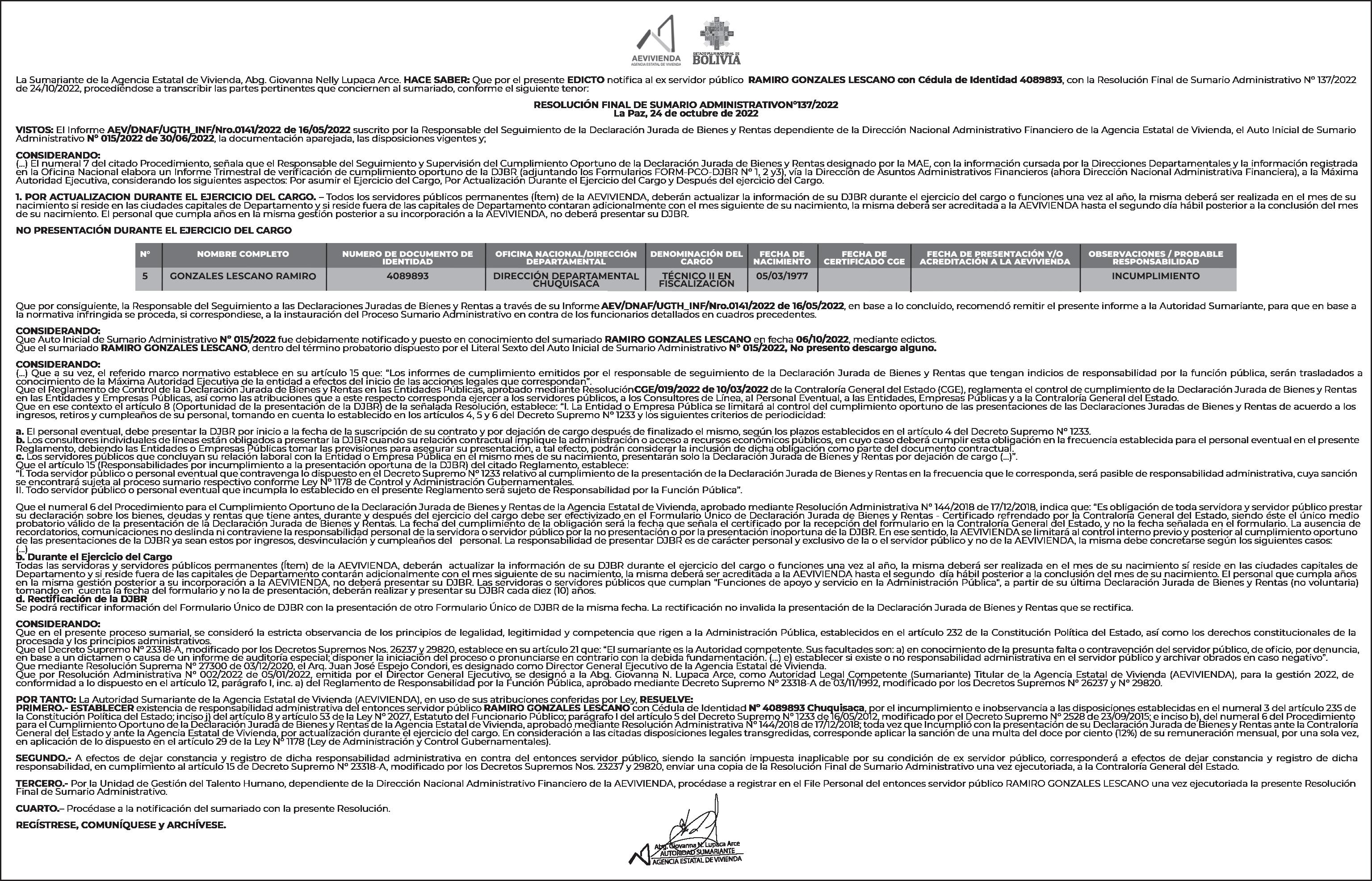 “Lamentamos confirmar la muerte del efectivo policial sargento 1ro Wálter Huayra Yujra, en un operativo antinarcóticos en el parque Noel Kempff Mercado”, informó sobre lo ocurrido durante el operativo antidroga, en el que también perdió la vida un ciu-