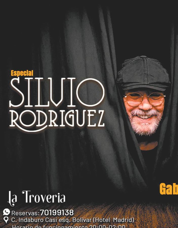 En la Trovería, el músico Gabriel Poma es el encargado de llevar a cabo este homenaje al ‘Aprendiz de Brujo’, el músico, poeta, el inigualable cubano Silvio Rodríguez. En el especial estará presente su mejor repertorio que evoluciona con cada presentación en la que repasará muchas de sus canciones. Informes al 70199138.