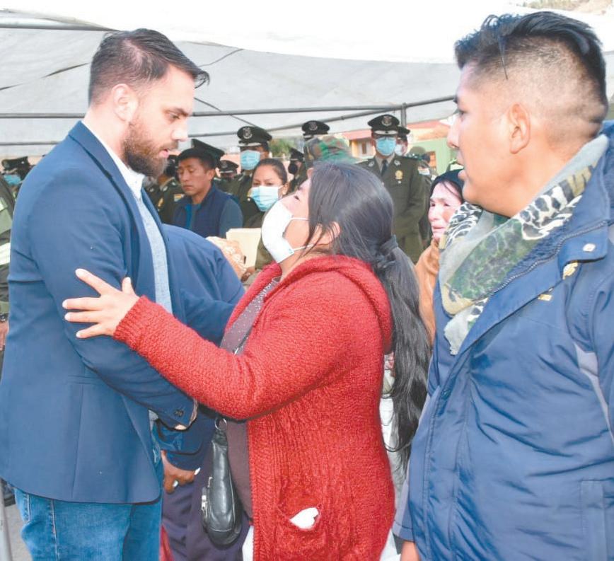 Desde 2017 hasta 2022 hubo más de 2.390 denuncias de asentamientos ilegales en todo el territorio nacional.• Jacqueline Luque LA AUTORIDAD INFORMÓ que // FOTO: ABI El Ministro de Gobierno junto a la familia del policía fallecido.